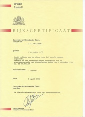 1992-1994 Brandweeropleidingen, MBO Rijksdiploma “Brandwacht 1e klas”